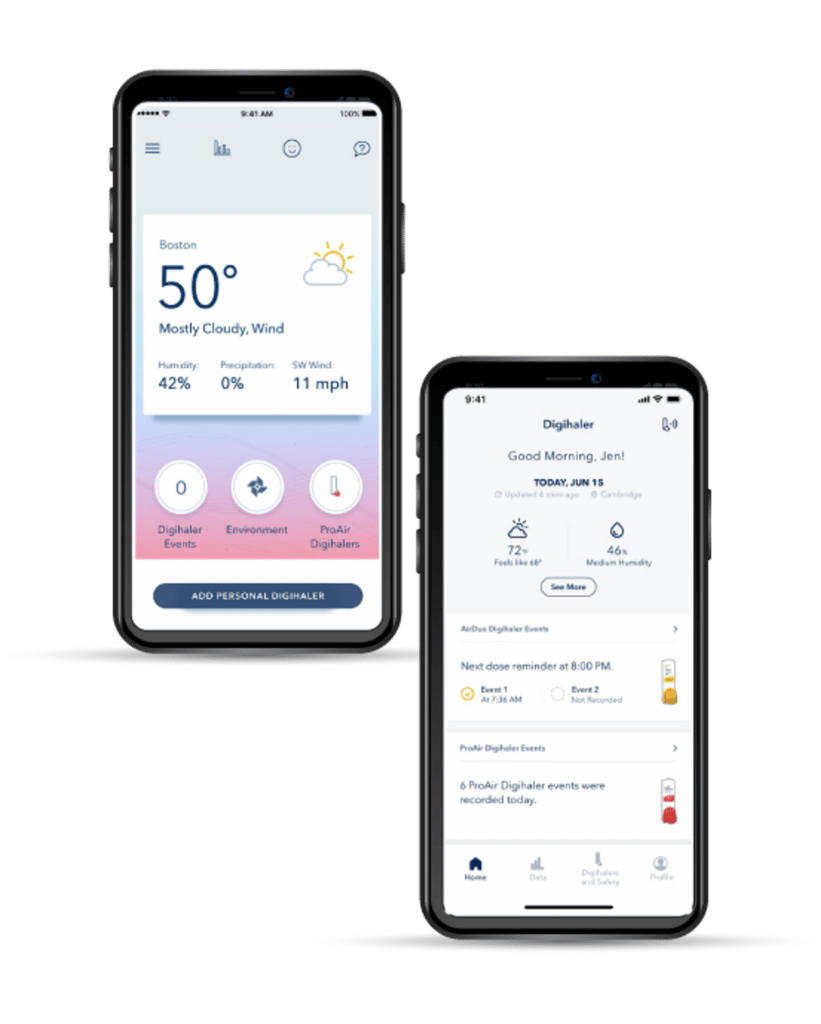 The inhaler records patient events and sends data directly to the app through Bluetooth wireless technology, and the app can then display data and reports that patients can choose to share with their healthcare providers. The data is shared to a cloud database which permits both patient-specific data analysis and aggregated analysis of the information coming from the devices and applications.